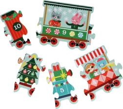 Složite dugi božićni vlakić pun životinjskih putnika i blagdanskih detalja. Djeca pri slaganju vježbaju prepoznavanje brojeva, boje i oblike te logičko razmišljanje. Veliki i izdržljivi dijelovi lako se drže, a prekrasne ilustracije pozivaju na ponovnu igru.
