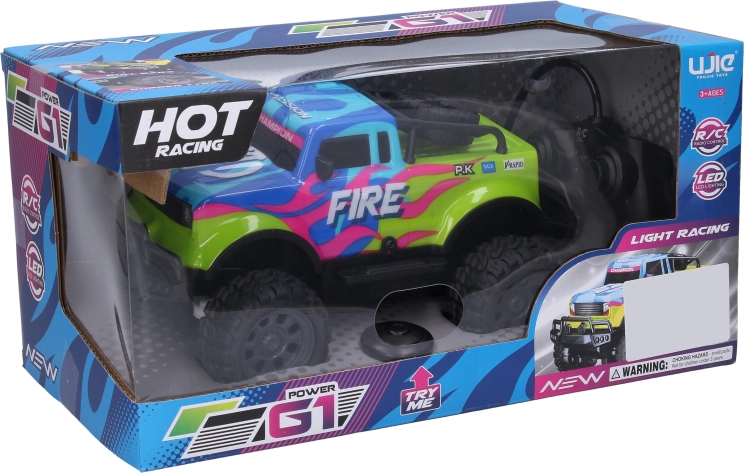 Svjetleći RC auto Fire donosi sjajnu zabavu za djecu i odrasle. Zahvaljujući efektnim svjetlosnim elementima na karoseriji ističe se u vožnji danju i u sumrak. Lako se upravlja pomoću daljinskog upravljača na frekvenciji 27 MHz i postiže brzinu do 10 km/h.