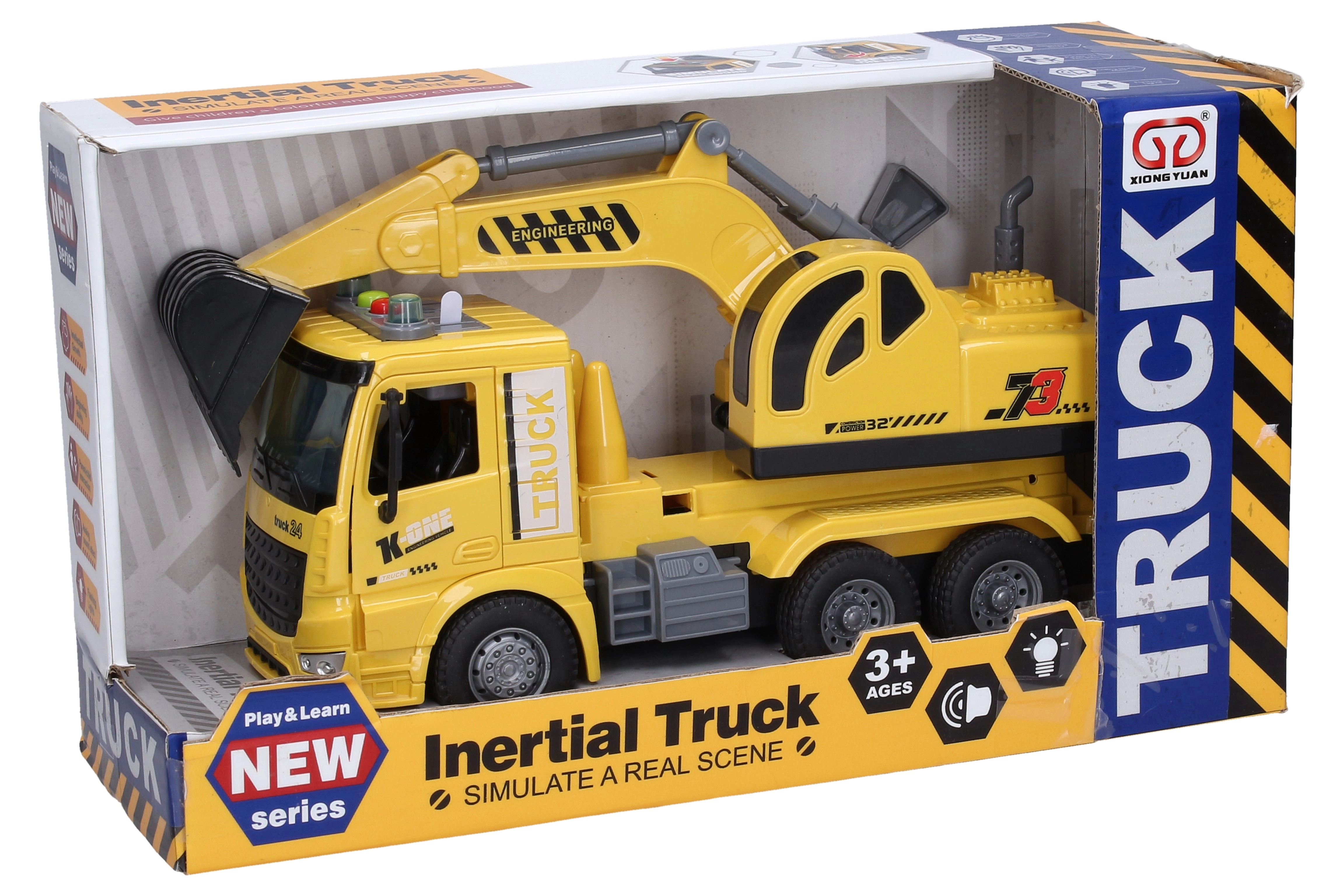 Ovaj detaljno izrađen građevinski bager duljine 28 cm idealna je igračka za sve male ljubitelje građevinskih strojeva. Inercijski pogon osigurava glatku vožnju, dok gumbi na krovu aktiviraju realistične zvukove motora, kopanja, vožnje unatrag i trubljenja uz svjetlosne efekte.