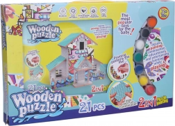 Otkrijte kreativnu zabavu za djecu i odrasle: 3D drvene puzzle kućice koje nakon sastavljanja možete sami obojiti. Paket sadrži sve potrebno – precizne drvene dijelove, boje, kist i ilustriranu uputu. Nakon sastavljanja kućica ima dimenzije 13,2 × 9,1 × 10,5 cm.