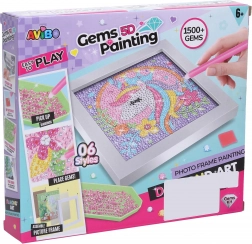 Postupak je jednostavan: odlijepite zaštitnu foliju s predloška, vrh priložene olovke utisnite u vosak, pokupite kamenčić i postavite ga na odgovarajuće mjesto na slici. Po završetku umetnite sliku u priloženi okvir i izložite svoje vlastito blistavo umjetničko djelo.