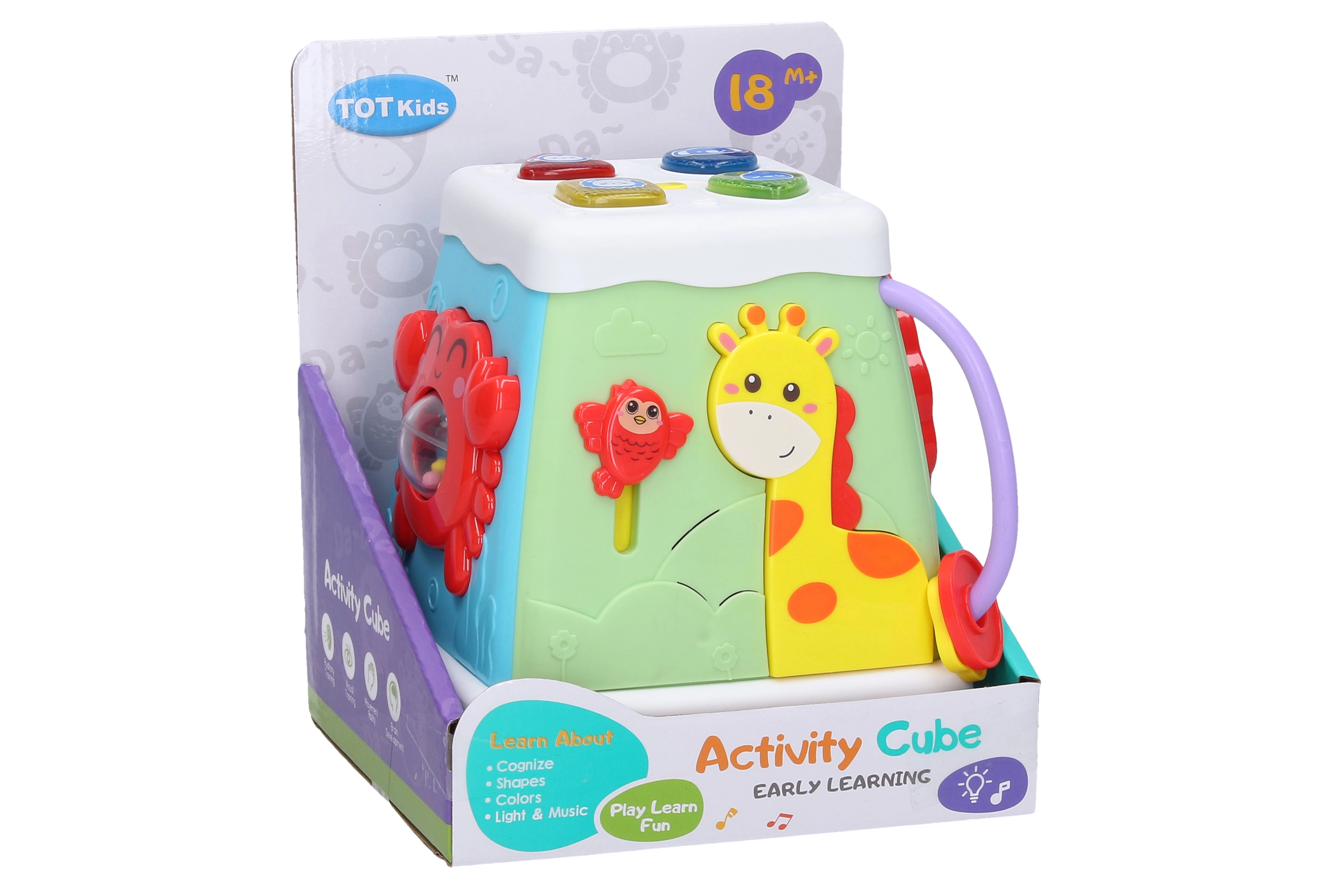 Ova interaktivna kocka donosi djeci mnogo poticaja i zabave. Zahvaljujući svjetlosnim i zvučnim efektima potiče razvoj vida, sluha i koordinacije, dok se kompaktna dimenzija 13 cm savršeno uklapa u dječje ručice. Pomoću tipke on/off efekte možete lako uključiti ili isključiti.