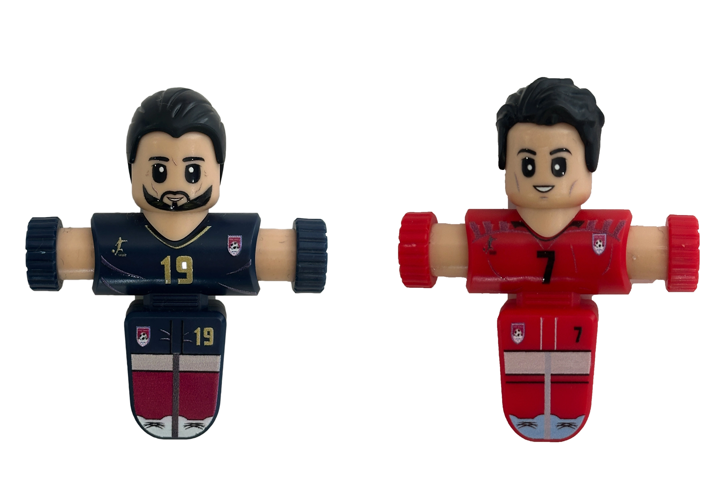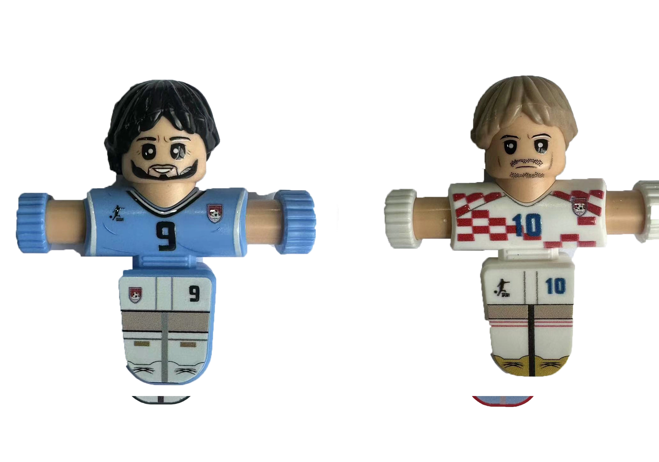 Uživajte u dinamičnoj stolnoj nogometnoj zabavi s ovim kompaktnim setom. Dovoljno je položiti trake na stol kao golove, postaviti figurice jednu nasuprot drugoj i stisnuti im ruke jednu prema drugoj – figurica će se okrenuti i ispaliti loptu. Igra razvija reflekse, koordinaciju i spretnost, a istovremeno donosi puno smijeha i natjecanja.