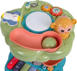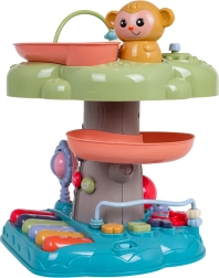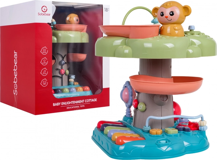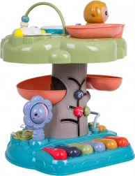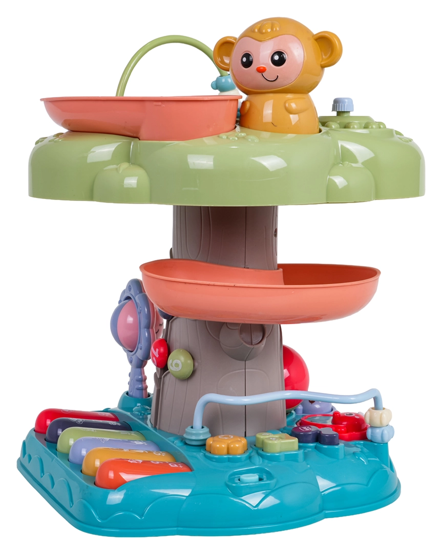 Interaktivno stabalce idealna je edukativna igračka za najmlađe. Djecu će osvojiti osvijetljeni glazbeni bubanj na vrhu, klavir s četiri načina rada (brojevi, melodije, životinje i njihovi zvukovi, tonovi) te spiralna staza za loptice niz koju se kuglice radosno kotrljaju. Šareni elementi, svjetla i melodije podupiru osjetilni razvoj i učenje uzroka i posljedice.