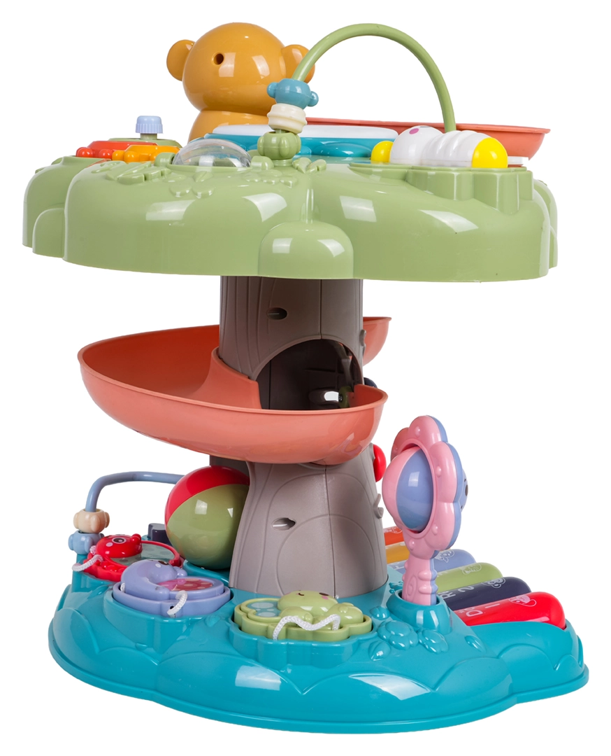 Zabavno interaktivno stabalce za djecu od 18 mjeseci razvija finu motoriku, logiku i osjetilnu percepciju. Nudi svjetlosne i zvučne efekte, klavir s više načina rada, spiralni tobogan za loptice i mnogo manipulativnih elemenata (okretanje, pomicanje, umetanje oblika). Kvalitetna plastika bez oštrih rubova, žive boje i sigurna izrada jamče sate radosne igre.