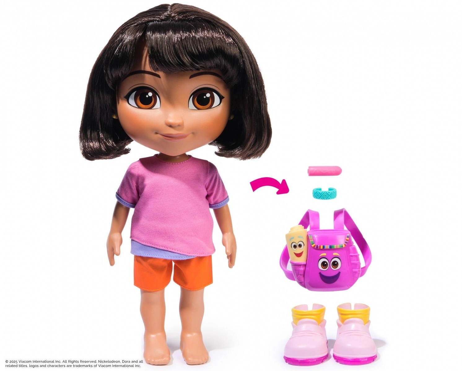 Uđite u svijet avanture s lutkom DORA koja pjeva, govori engleski i ispušta vesele zvukove nakon pritiska na trbuščić. Zahvaljujući realistično mekoj kosi idealna je za češljanje i stiliziranje, dok odvojive cipele i dodaci potiču kreativno presvlačenje i pripovijedanje vlastitih priča.
