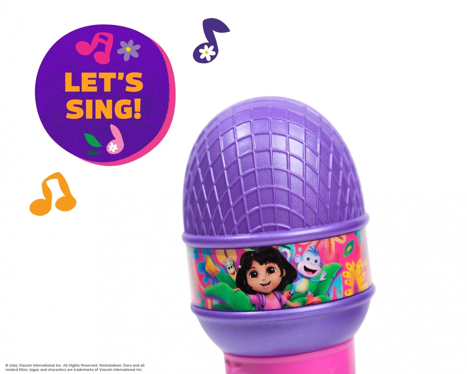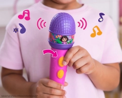 Mikrofon s efektima DORA savršen je izbor za male pjevače i obožavatelje omiljene junakinje. Jednim pritiskom gumba djeca pokreću poznate hitove poput „We Did It” ili „Todo Juntos”, a mogu poslušati i vesele fraze, primjerice „That's banana-riffic!”. Kompaktna veličina (19,5 cm) odlično leži u ruci i potiče prirodnu dječju kreativnost.