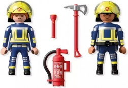 Dva hrabra vatrogasca iz pakiranja PLAYMOBIL Duo Pack spremni su za intervenciju. S profesionalnom opremom kao što su sjekira, baterijska lampa i vatrogasni aparat, savladat će svaki požar i akciju spašavanja. Zahvaljujući pokretnim viziroma na kacigama imaju bolji pregled i brzu reakciju. Idealno za kreativnu igru i nadopunu kolekcije.