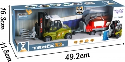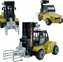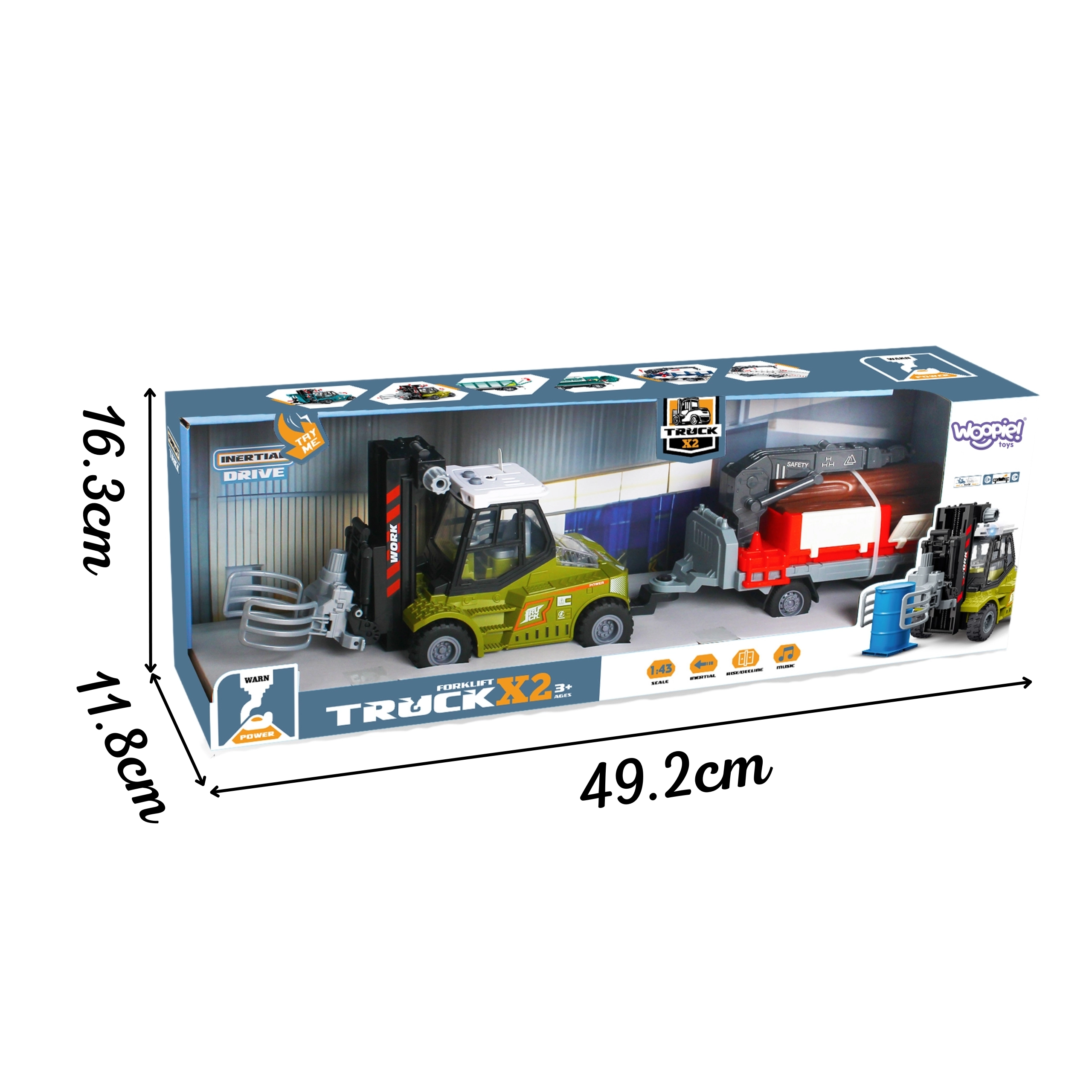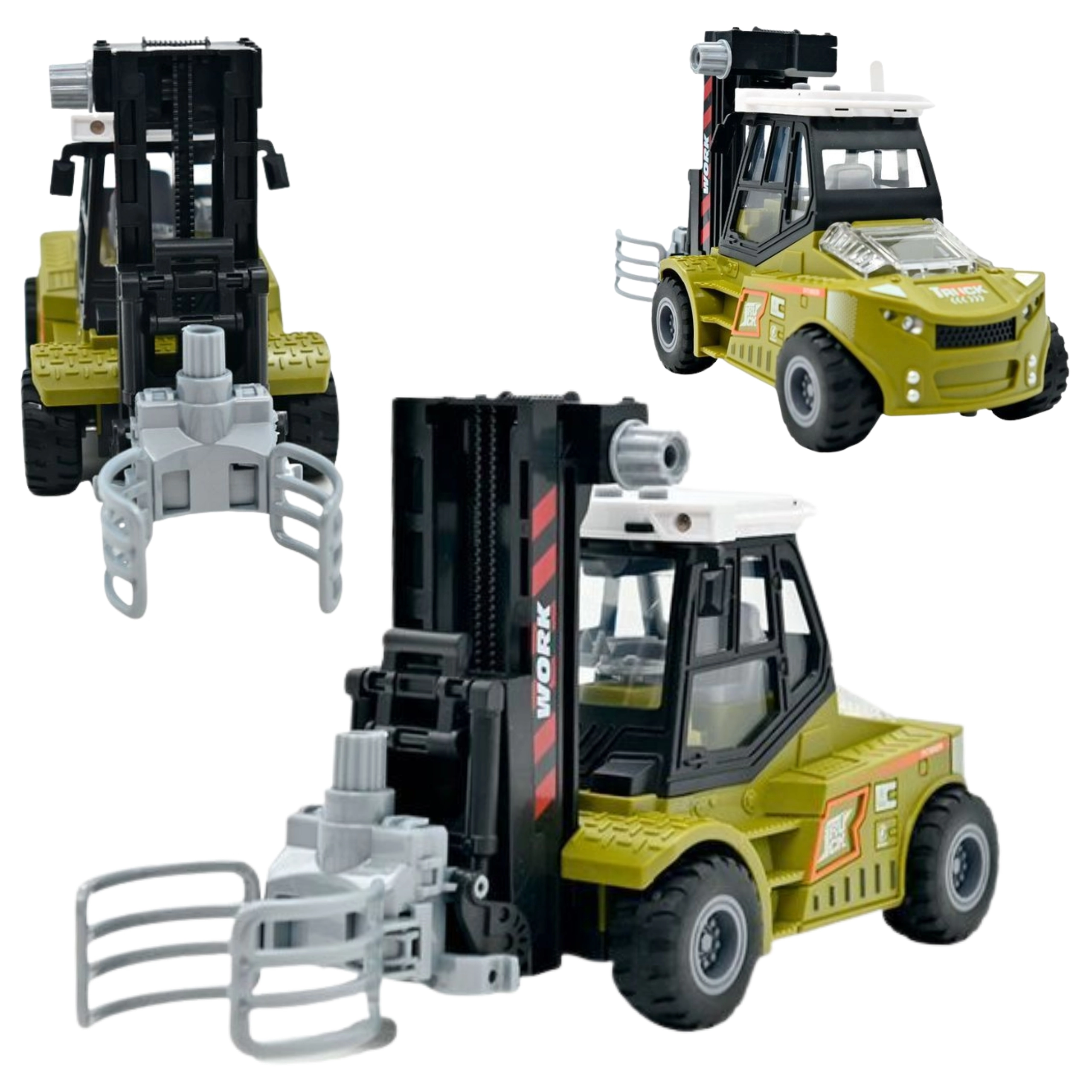 Realistični model u mjerilu 1:43 oduševit će male zaljubljenike u građevinske i transportne strojeve. Viličar ima inercijski pogon – dovoljno ga je pogurnuti i kreće naprijed. Pokretni krak s kliještastim prihvatom omogućuje podizanje i prenošenje drvenih trupaca, dok prikolica s bočnim stijenkama koje se otvaraju olakšava utovar i istovar.