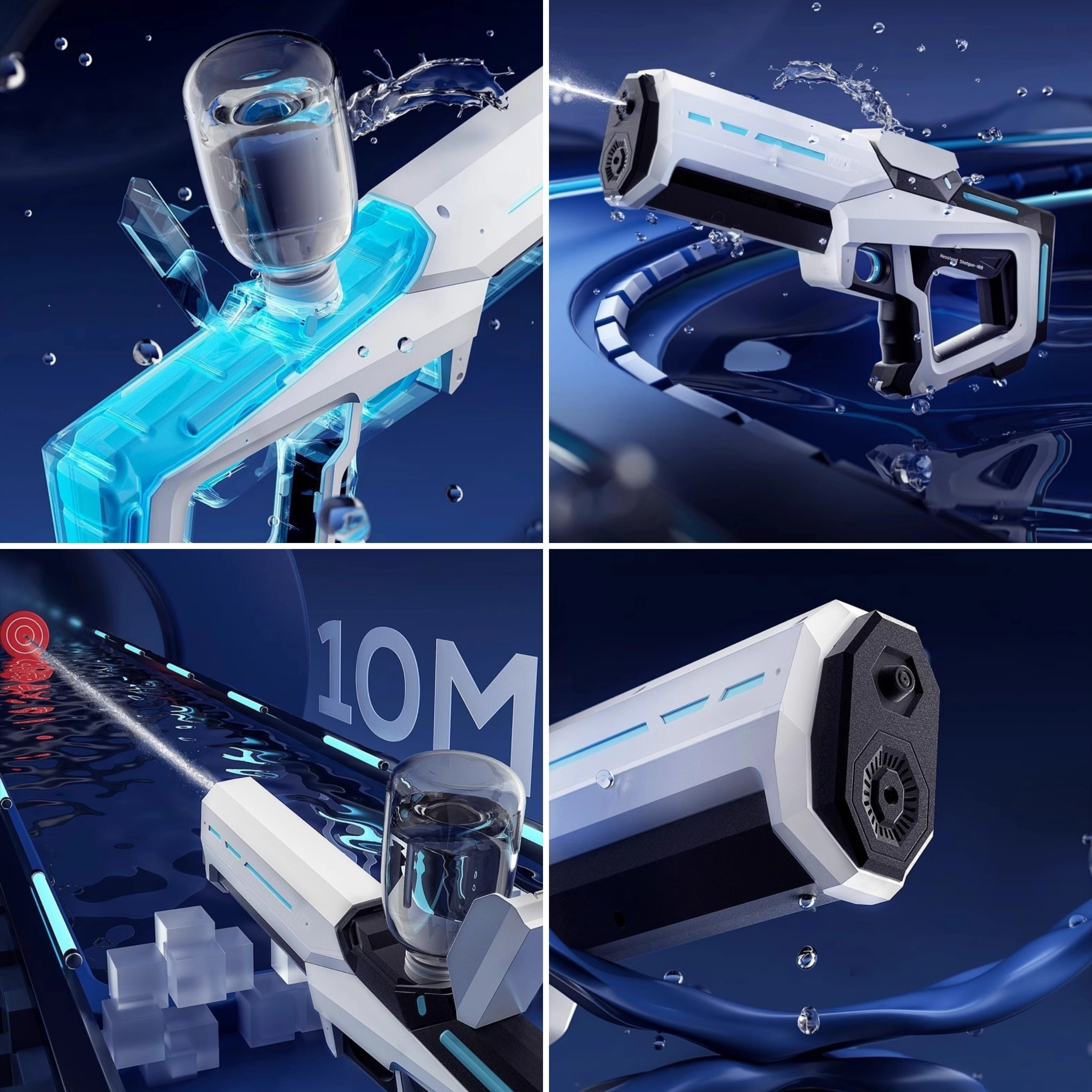Odaberite automatski mlaz za neprekidnu paljbu držanjem okidača ili ručne pojedinačne hice za precizne pogotke. Izdržljiva plastika i sigurna konstrukcija idealne su za vanjsku zabavu, dok USB punjenje olakšava brzo dopunjavanje gotovo bilo gdje.