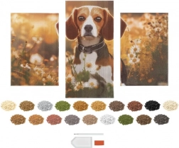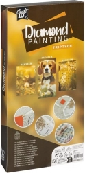 Stvori svjetlucavi trodijelni prikaz s motivom psa uz set za dijamantno slikanje. Set je jednostavan i za početnike, potiče relaksaciju i koncentraciju, a rezultat je originalna dekoracija za svaki interijer.