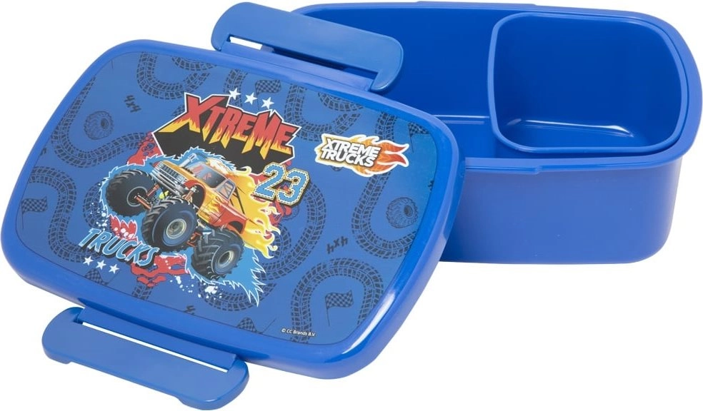 Stilna i funkcionalna kutija za užinu, idealna za svakodnevno nošenje u školu, na aktivnosti ili izlete. Izdržljiva konstrukcija bolje podnosi padove i udarce, dok motiv XTREME TRUCKS oduševljava male obožavatelje snažnih strojeva.