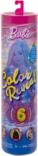 Lutke Barbie Color Reveal donose jedinstveno vodeno otkrivanje nadahnuto šarenim balonskim životinjicama. U praktičnoj tubi nalazi se lutka skrivena ispod sloja boje – dovoljno ju je uroniti u toplu vodu, zavrtjeti i promatrati kako se otkriva njezin pravi izgled. Svako pakiranje spaja stil i zabavu uz mogućnost promjene izgleda toplom i hladnom vodom.