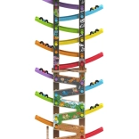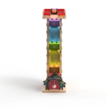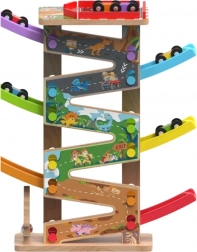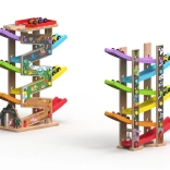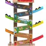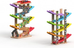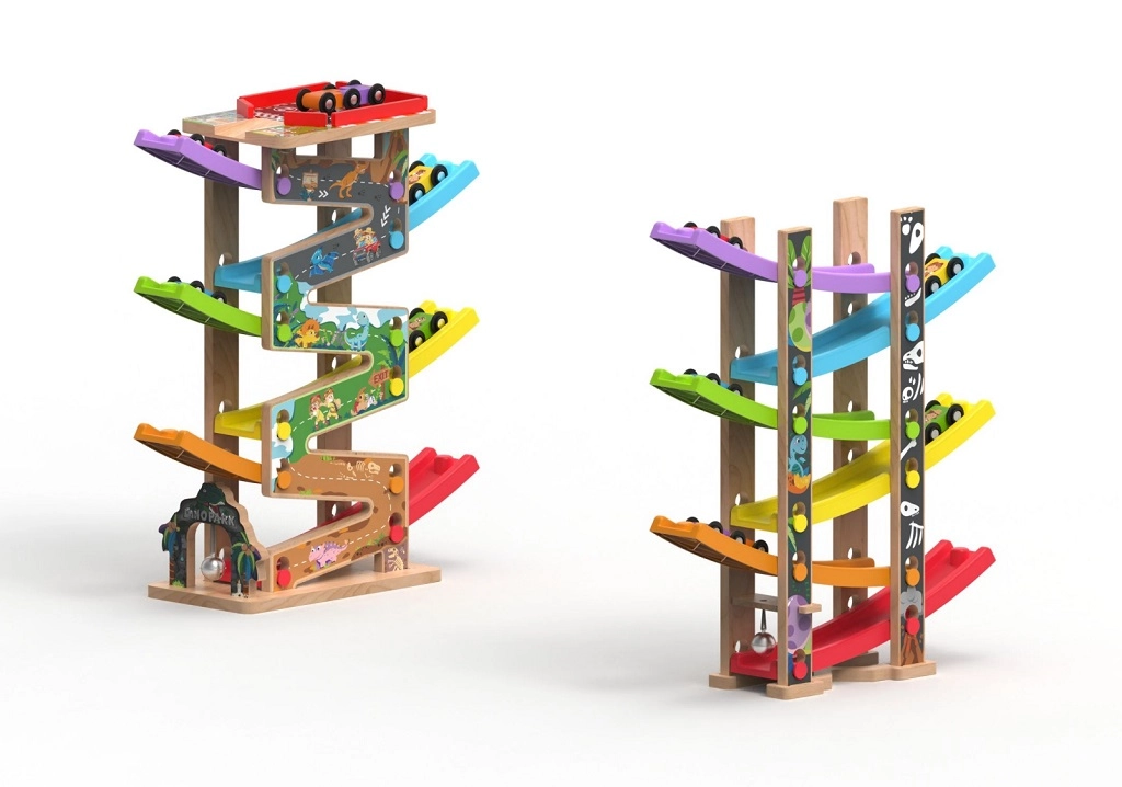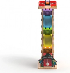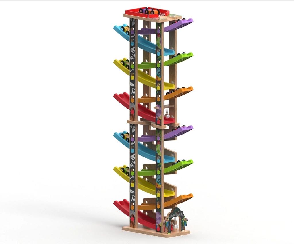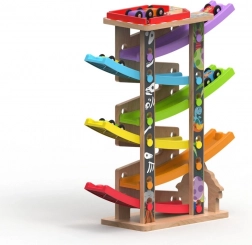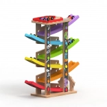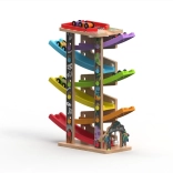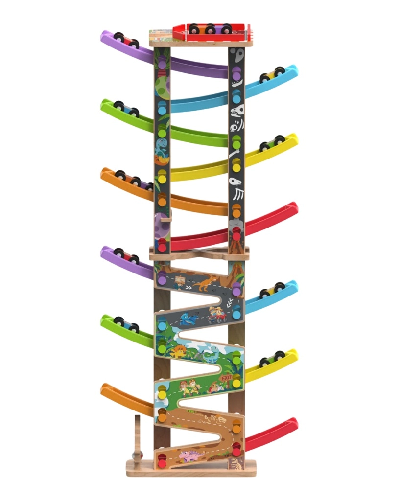 Ova vertikalna drvena trkaća kula s 6 šarenih rampi donosi dinamičnu igru temeljenu na gravitaciji. Djeca postave autić na vrh i promatraju kako juri prema dolje kroz pojedine razine, zavoje i mostove. Zahvaljujući stabilnoj konstrukciji i kompaktnim dimenzijama, staza je prikladna za dječju sobu i igraonicu te odolijeva intenzivnoj upotrebi.