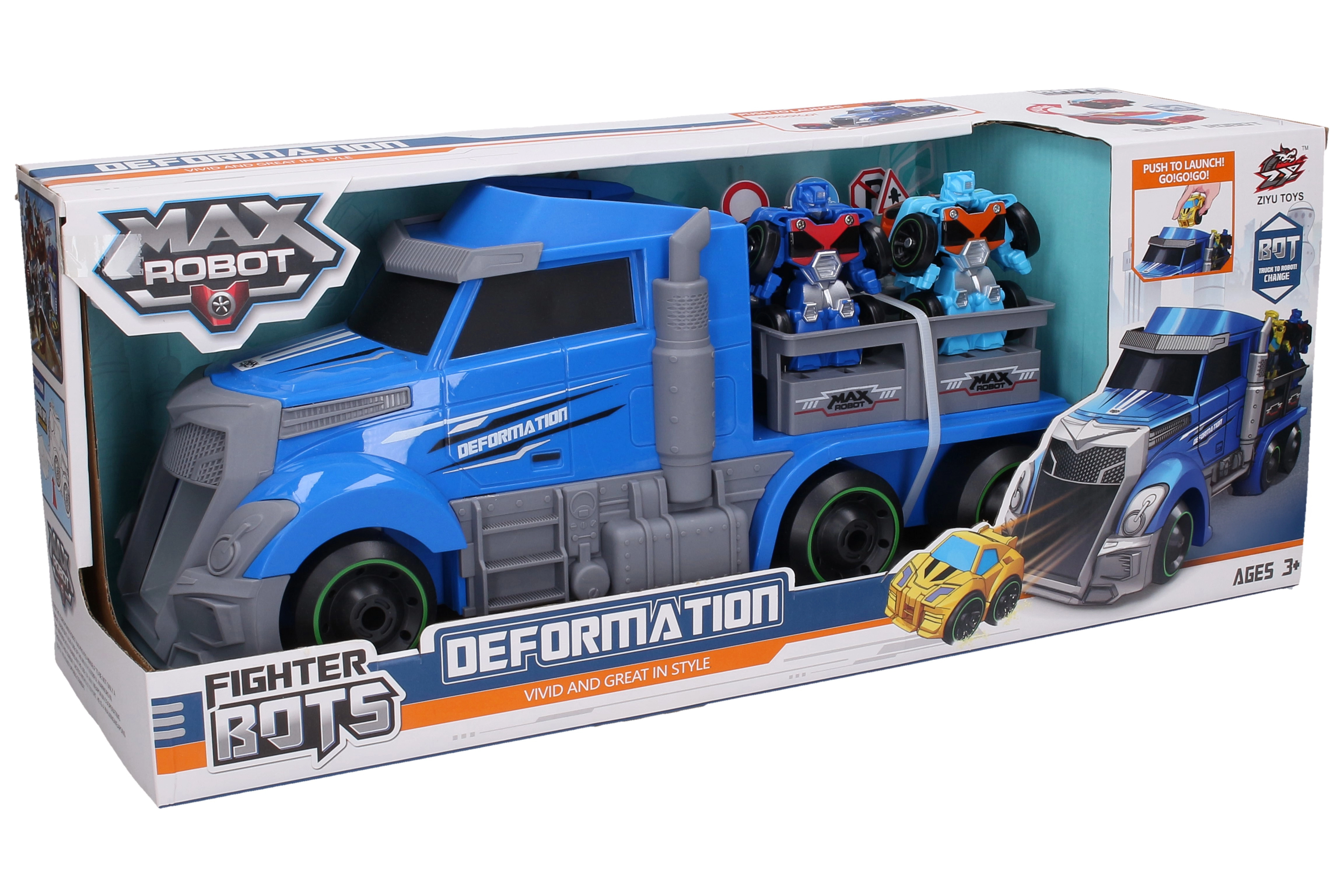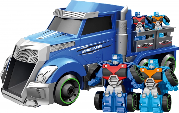 Zabavan set za male ljubitelje robota i automobila donosi bazu s rampom i dva robota koja se transformiraju. Dio seta je i kamion – mobilna baza – te prometni znakovi za realističnu igru. Djeca će uživati u satima kreativne zabave i razvijanju mašte zahvaljujući lakoj transformaciji i prijenosnoj bazi. Transformacija robota u teretni automobil, mobilni kamion–baza 38 cm, rampa za akcijsku vožnju i prometna signalizacija čine ovaj set sjajnim poklonom.