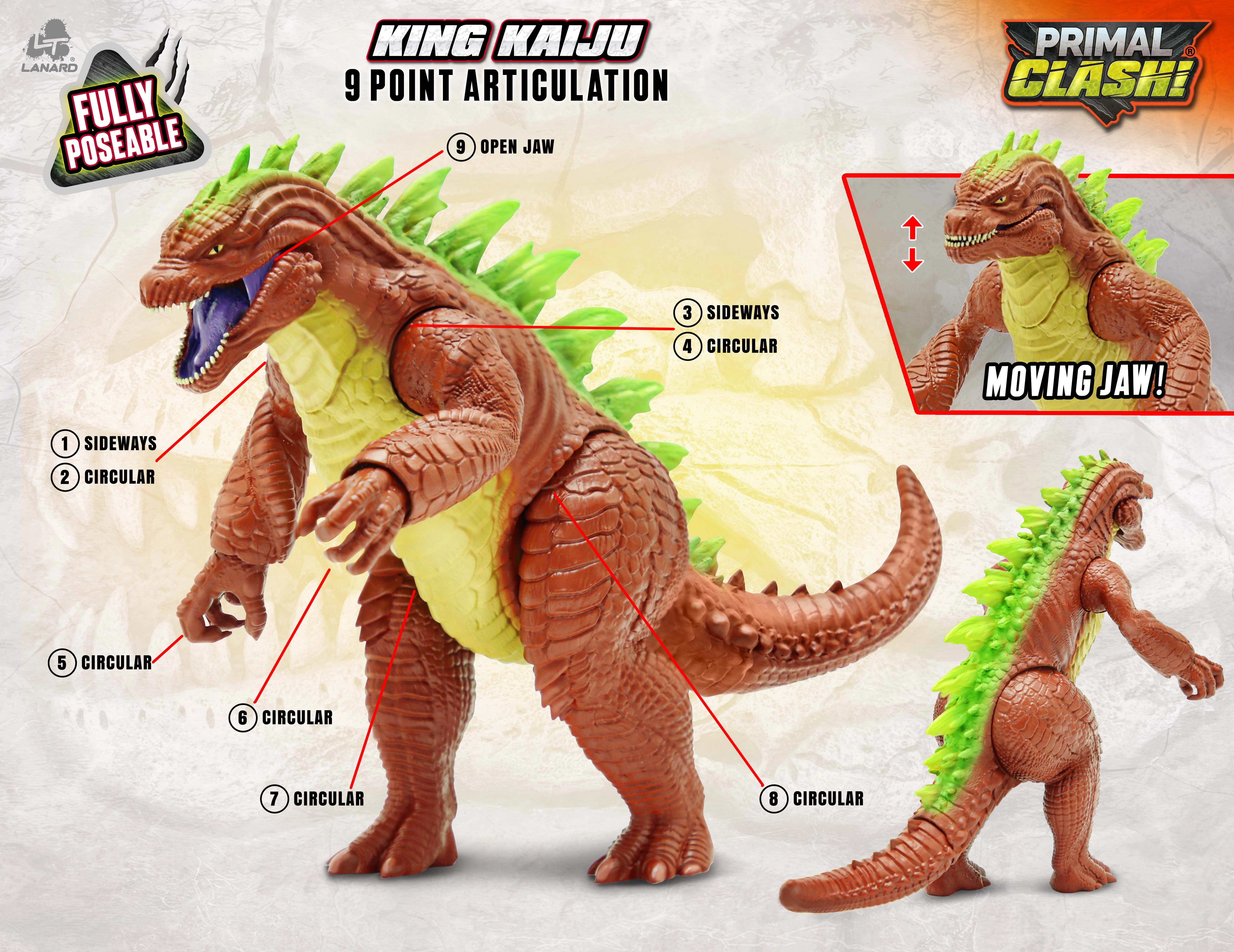 Uđite u svijet golemih čudovišta s figuricom King Kaiju iz serije Primal Clash. Ova detaljno izrađena igračka/dekoracija visoka 43 cm oduševljava upečatljivim dizajnom, stabilnom izradom i lakom montažom – rep je dovoljno jednostavno pričvrstiti.