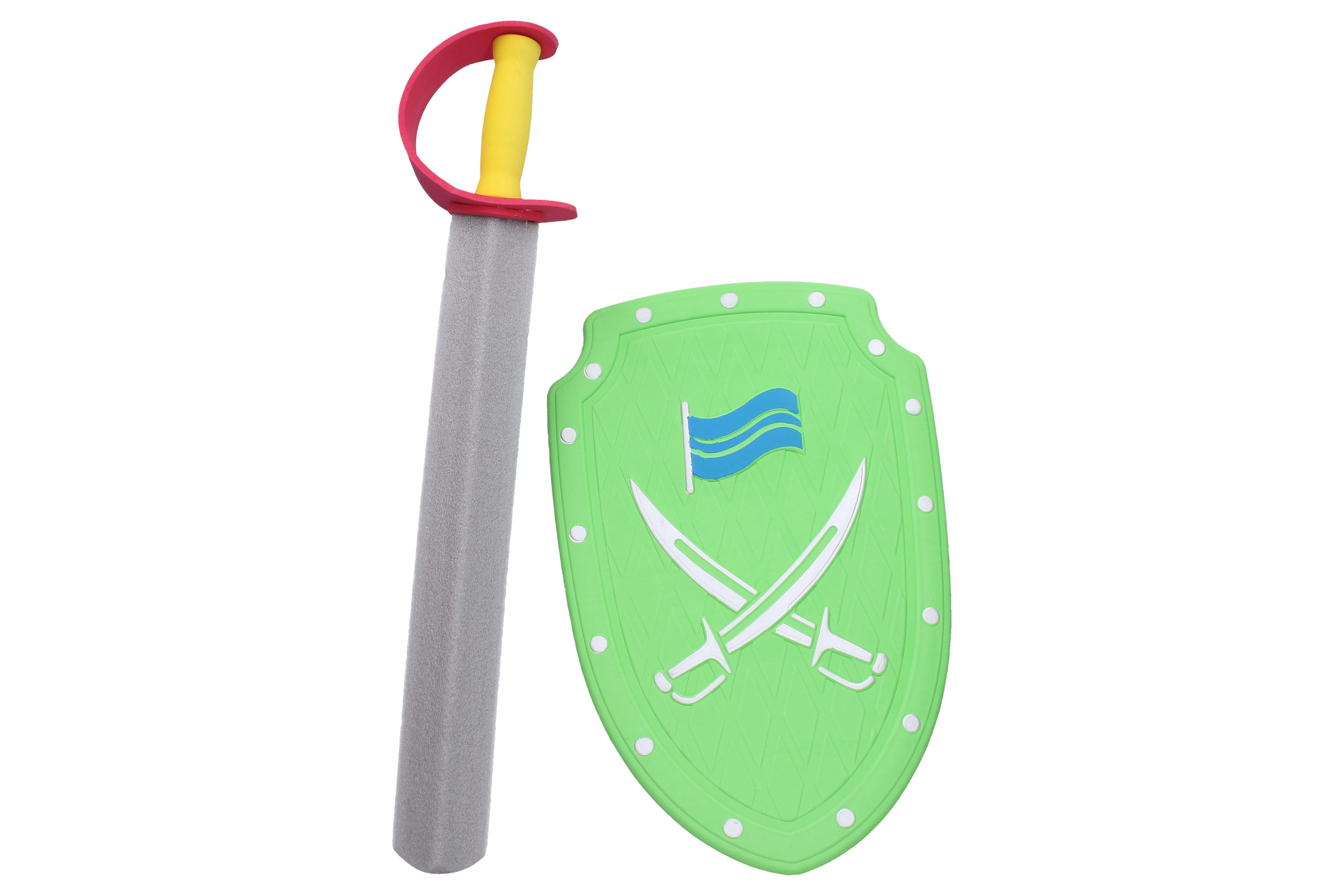 Mač duljine 57 cm dovoljno je dug za napete dvoboje, a istovremeno lagan za jednostavno rukovanje. Štit s dimenzijama 27,5 × 41,5 cm pomaže djeci trenirati spretnost i koordinaciju.