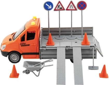 Pobrinite se za red u gradu s detaljnim cestovnim servisnim vozilom. Zahvaljujući inercijskom pogonu vozilo kreće nakon guranja, svjetlosni i zvučni efekti pojačavaju dojam prave cestarske službe, a priloženi znakovi, čunjevi i pomagala proširuju mogućnosti igre.