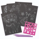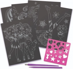 - 5 izgrebavajućih pločica, 2 izgrebavajuća alata, 21 šablona, upute i Isadorina priča