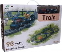 Zabavna vlakovna pruga dimenzija 112 × 61 × 7,5 cm razveselit će male ljubitelje vlakova. Set od 90 dijelova nudi povezivanje vagona magnetima, zvučne efekte i jednostavno upravljanje smjerom vožnje prekidačem na lokomotivi. Baterija 1× CR2032 (3 V) uključena je u pakiranje, lokomotiva zahtijeva 1× AA (1,5 V) – nije uključena.