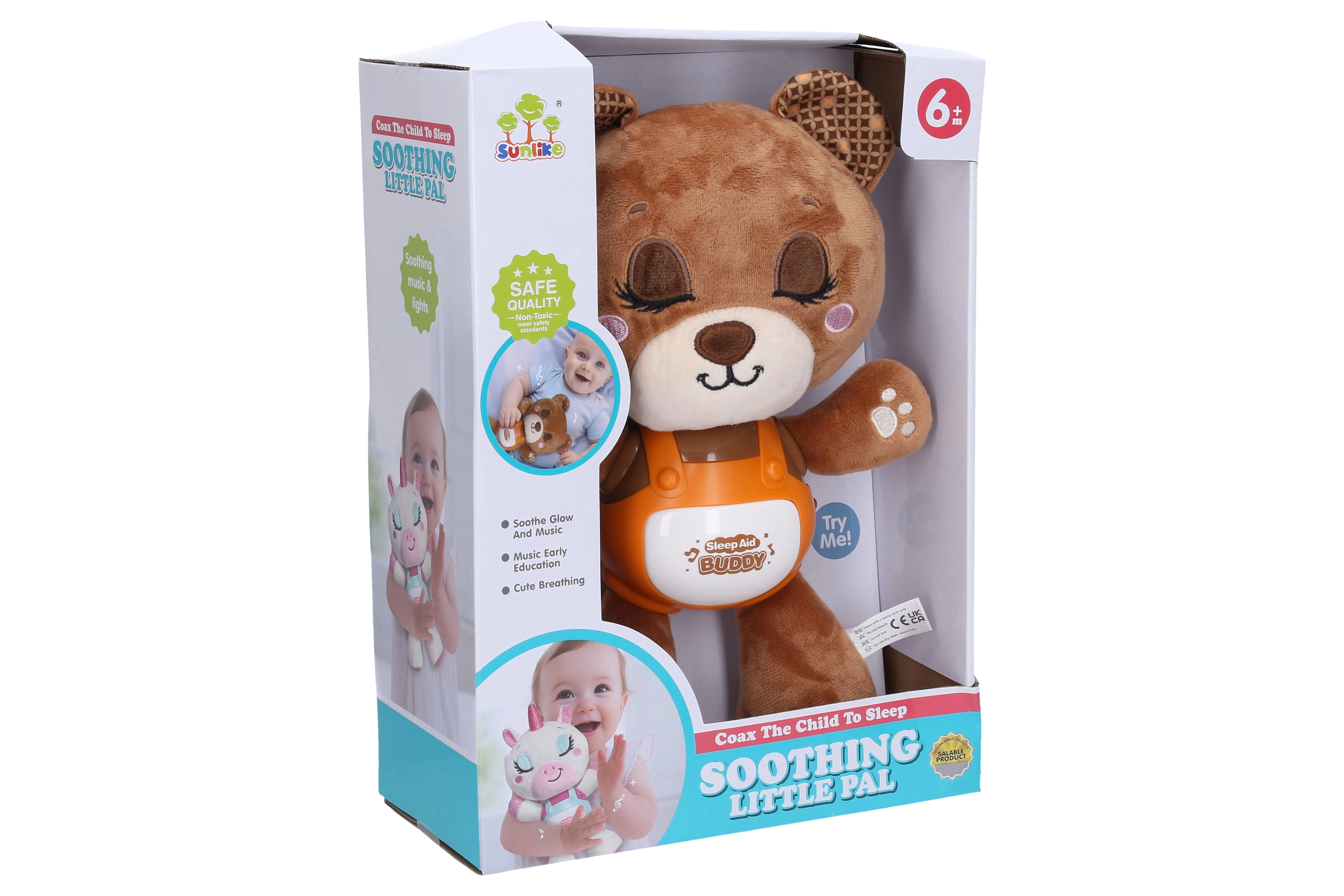 Dječji prijateljsko upravljanje upotpunjuje glavni prekidač on/off na boku životinjice. Medvjedić za uspavljivanje mekan je na dodir i pogodan za svakodnevnu uporabu kod kuće i na putovanjima.