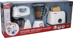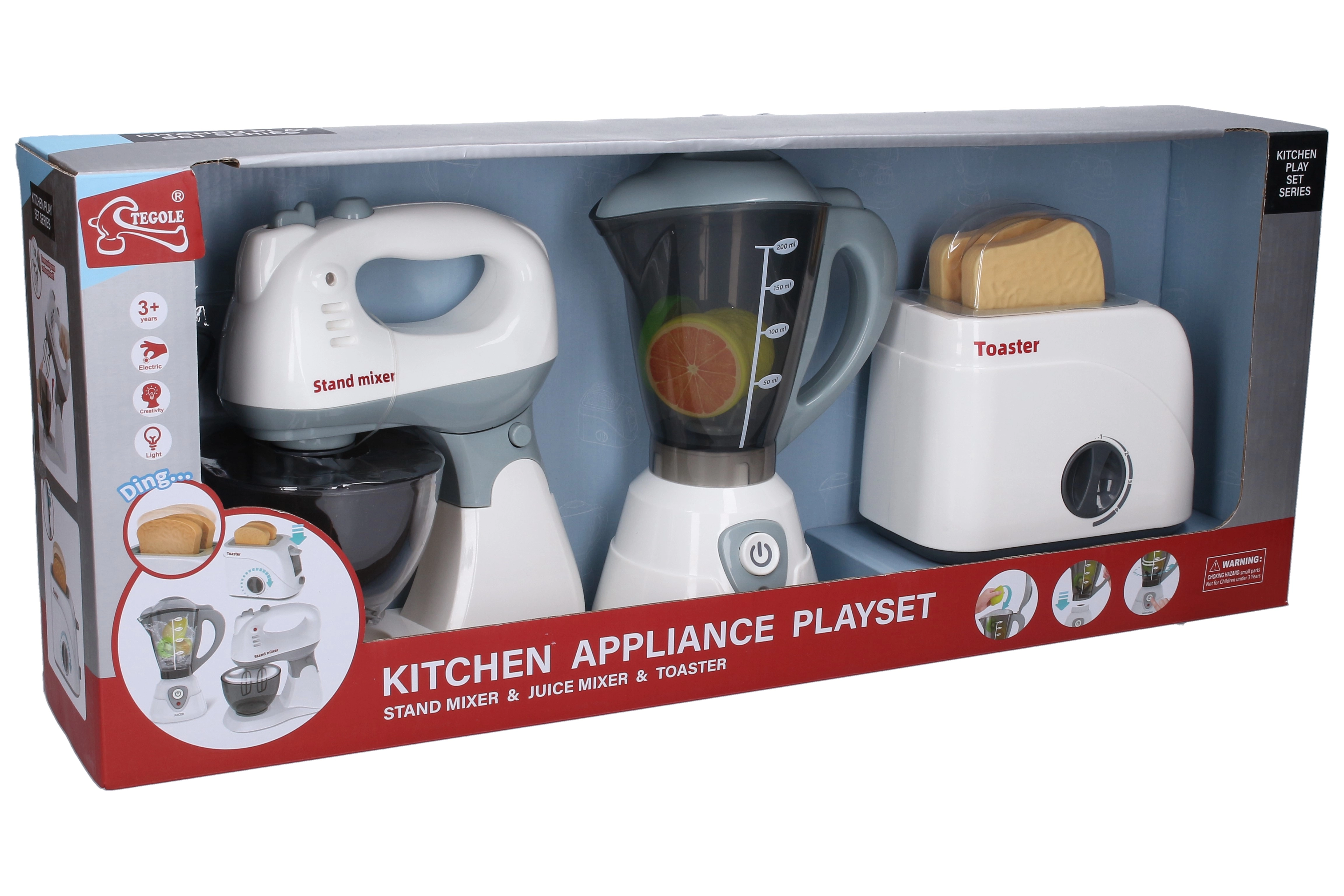 Otkrijte zabavni dječji set kuhinjskih aparata s realističnim funkcijama koji djeci približava svijet kuhanja. Set sadrži mikser s odvojivom posudom, toster s mehaničkim timerom i miksér (ručnu miješalicu) s izmjenjivim metlicama. Svjetlosni efekti i funkcionalni elementi poput on/off prekidača, iskakanja tosta i odvojivih dijelova jamče sate sigurne i kreativne igre.