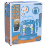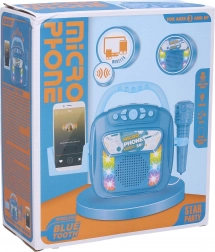 Prijenosna glazbena kutija s mikrofonom i bežičnim povezivanjem putem Bluetootha razveselit će djecu i odrasle. Nudi svjetlosne efekte, mogućnost snimanja, jednostavno podešavanje glasnoće i prebacivanje pjesama. U pakiranju se nalaze USB kabel za punjenje, držač za mobitel i baterijski paket 3,7 V – sve spremno za trenutačnu upotrebu.