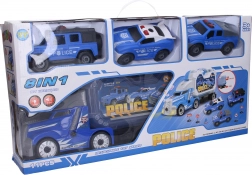 Krenite u akcijsku policijsku misiju s velikim kamionom koji prevozi tri autića na šarafe. Set nudi svjetlosne i zvučne efekte, slobodno okretajuće kotače i praktični ON/OFF prekidač na donjoj strani kamiona. Zahvaljujući priloženom odvijaču djeca mogu vozila rastavljati i sastavljati, čime razvijaju finu motoriku, strpljenje i tehničke vještine.