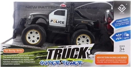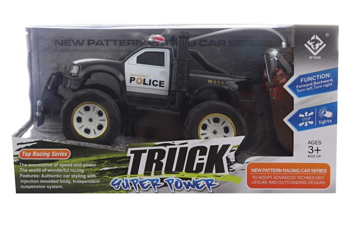 Policijski RC monster truck donosi djeci realističnu akciju s efektnom crno-bijelom policijskom grafikom, velikim gumama i svjetlećim farovima. Upravljanje na 27 MHz je intuitivno i prikladno za početnike – idealan izbor za prvi daljinski upravljani auto.