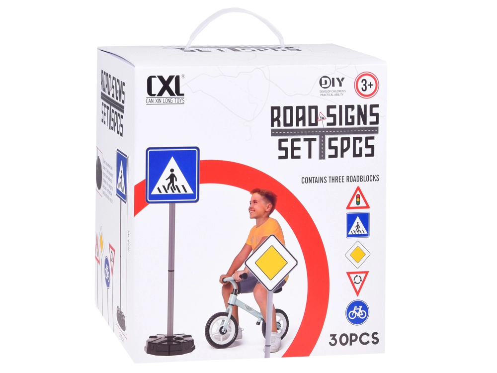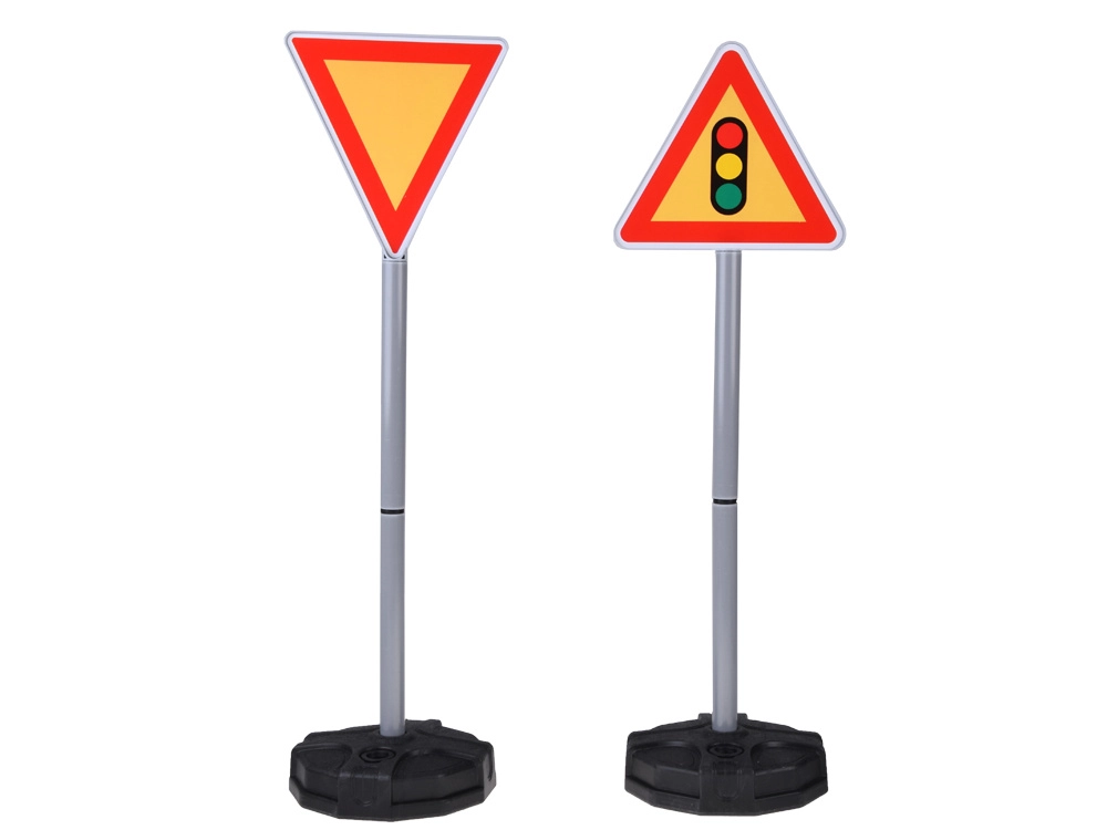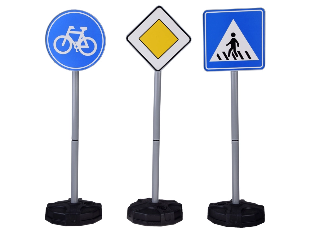 Ovaj edukativni set prometnih znakova sjajan je način da se djeca kroz igru upoznaju s pravilima cestovnog prometa. Zahvaljujući realističnim oblicima, visini od približno 77 cm i upadljivim bojama djeca lako pamte značenje pojedinih znakova i uvježbavaju pravilno ponašanje na cesti.