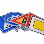 - 5 figura prometnih znakova (semafor, pješački prijelaz, glavna cesta, kružni tok, biciklistička staza)