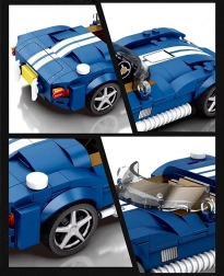 Plavi sportski automobil u bezvremenskom roadster stilu oduševit će ljubitelje klasike i tehničkih setova. Nisko, izduženo tijelo sa zaobljenim prednjim dijelom, otvorena kabina i izraženi blatobrani daju modelu autentičan izgled. Zahvaljujući 312 dijelovima složit ćete efektan i stabilan model koji se ističe na polici i u kolekciji.