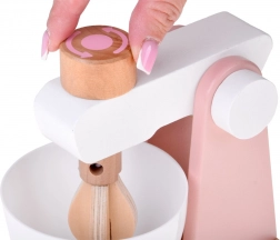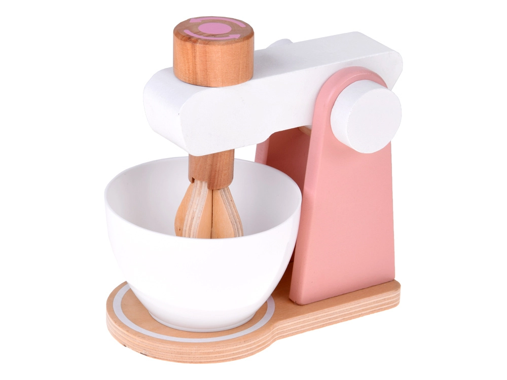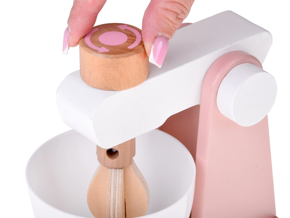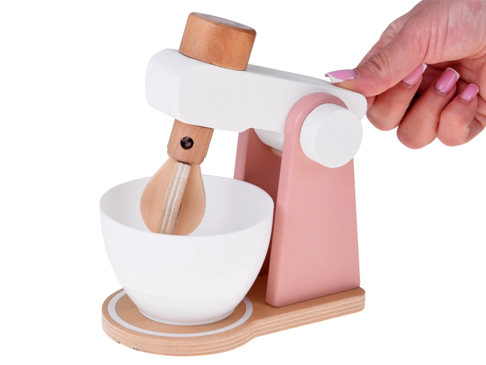 Stabilna drvena konstrukcija, odvojiva posuda i funkcionalni okretni gumb za simulaciju miješanja tijesta ili kreme. Idealno za malog slastičara.