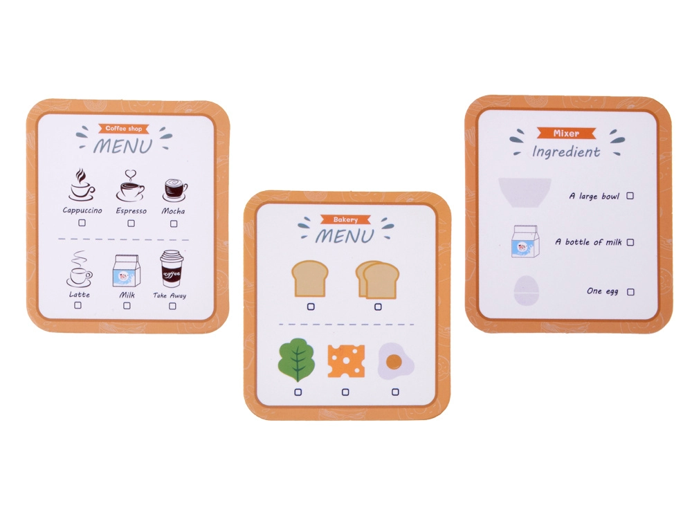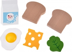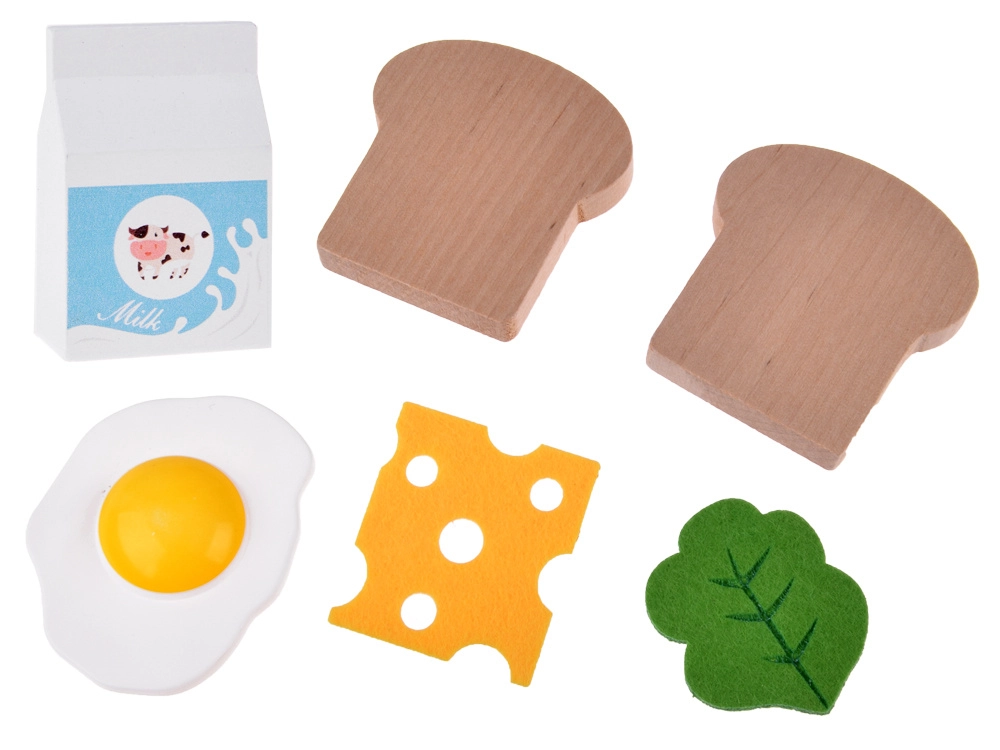 Sastavni dio je bogata oprema: drvene kriške kruha, lažno jaje, ploška sira, list salate, kutija mlijeka, kapsula kave i kartice jelovnika/recepata za još zabavniju igru.