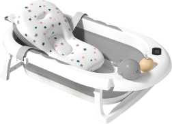 Ova sklopiva kadica za djecu idealan je izbor za svakodnevnu higijenu bebe kod kuće i na putovanjima. Integrirani LED elektronički termometar omogućuje brz i precizan prikaz temperature vode, pa će kupanje uvijek biti ugodno i sigurno. Mekani umetnuti ležaj stabilizira bebu i pomaže roditeljima pri sigurnom držanju bez nepotrebnog naprezanja.
