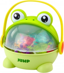Zabavna igra za djecu i odrasle koja trenira reflekse, koordinaciju i preciznost. Pritisnite žabicu i pustite je da skoči u posebnu kutiju u obliku žabe. Jednostavna pravila, puno smijeha i 15 šarenih skakajućih žabica u praktičnoj prijenosnoj kutiji.