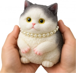 Preslatko bijelo-sivo mačiće s bisernom ogrlicom je mekano senzoričko antistres gnječilo od elastičnog silikona. Ima ugodnu teksturu koja podsjeća na krzno, izvrsno za gnječenje, oslobađanje stresa i kao stilska dekoracija za stol ili policu.
