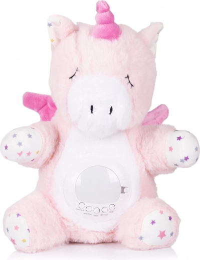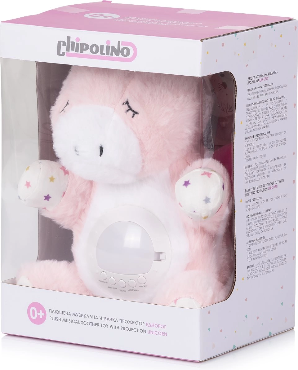 Plišani jednorog CHIPOLINO je mekani pratitelj za krevetić koji će umiriti vaše dijete nježnim svjetlom i prirodnim zvukovima. Zahvaljujući kombinaciji projekcije zvjezdanog neba, noćne lampice i uspavanki, stvara ugodnu atmosferu za neometan san.
