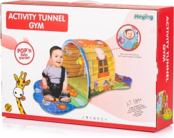 Zahvaljujući sigurnoj i udobnoj izradi, deka nudi ugodno mjesto za igru na trbuhu i na leđima. Prozorčići i detalji na tunelu pozivaju na provirivanje i skrivanja, što razvija znatiželju i maštu. Šareni elementi i teksture pružaju bogate podražaje za senzorni razvoj i prve socijalne interakcije s roditeljima.