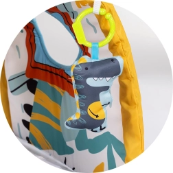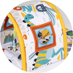Igrališna deka s tunelom CHIPOLINO House idealna je za bebe od prvih mjeseci. Mekana podloga sa šarenim otiscima i luk s visećim igračkama motiviraju dijete na pružanje ruku, hvat i okretanje. Lagan tunel ujedno potiče podizanje glavice i postupno puzanje, čime podupire prirodan motorički razvoj.