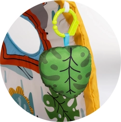 Podstavljena podloga s lukom i visećim igračkama motivira bebu na primanje i jača koordinaciju ruka–oko.
