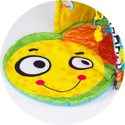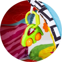 Promišljeni detalji pridonose razvoju koordinacije ruka–oko, fine i krupne motorike te prepoznavanju boja i oblika. Podložak pruža sigurnost i udobnost pri svakoj igri i lako se uklapa u dječju sobu.