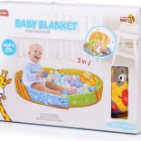 Sastavni dio su mekani plišani jastučići, grickalica, zvečke i šuškavi elementi koji stimuliraju sluh, vid i dodir. Podloga je odlična za tummy time (igru na trbuščiću) i mirno promatranje ležeći na leđima. Zahvaljujući jednostavnom sklapanju lako ju je prenijeti ili pospremiti.