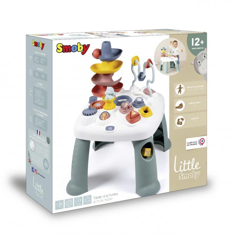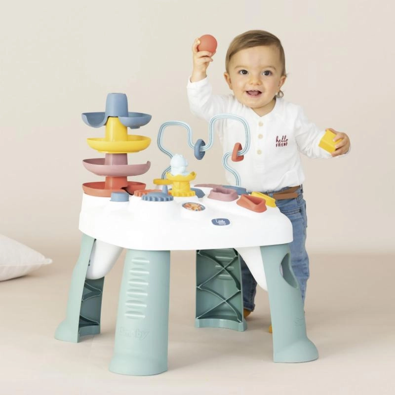 Igraći stol LITTLE SMOBY Activity osmišljen je za znatiželjnu malu djecu od 12 mjeseci. Čvrsta konstrukcija i stabilne noge podržavaju sigurnu igru, dok raznolike aktivnosti – od umetanja oblika do puštanja kuglice s kule – stimuliraju osjete i poboljšavaju koncentraciju. Idealno za dječju sobu i igraonicu.