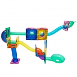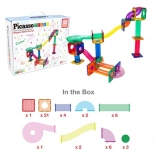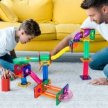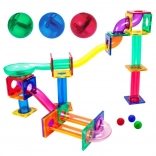 Ovaj šareni prozirni konstrukcijski set s magnetičkim pločama i cijevima omogućuje djeci gradnju beskrajno raznolikih staza za kuglice – od jednostavnih trasa do složenih višekatnih konstrukcija. Zahvaljujući čvrstim spojevima i glatkim stazama, kuglice nesmetano prolaze kroz zavoje, prepreke i lijevke.