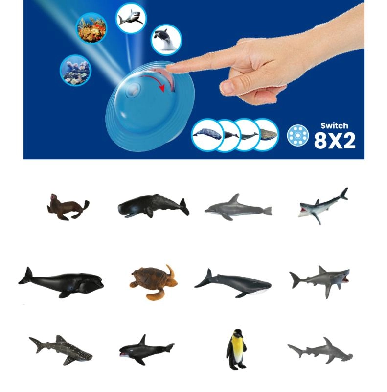 Set spaja svjetlo, boje i stvarne modele životinjica, zahvaljujući čemu djeca lako povezuju sliku sa stvarnošću. Projektor s dva kotačića projicira na zid ili strop morske motive, koje je djeci lako promatrati i koji ih potiču na pričanje priča.