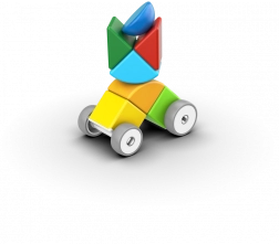 Posebno dizajnirani magnetski elementi lako se spajaju s različitih strana. Djeca tako bez napora slože autić i druge oblike te jačaju finu motoriku.