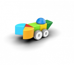Dva podvozja s četiri kotača pretvaraju šarene blokove u pokretno vozilo. Dovoljno je složiti i krenuti – igra dobiva novu dimenziju kretanja i mašte.