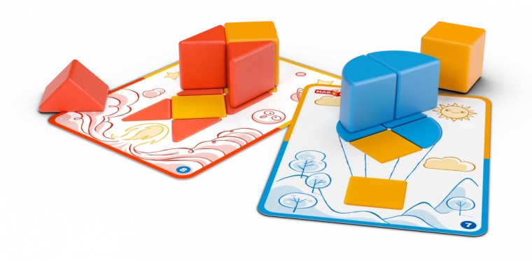 - Predlošci 1:1: djeca stavljaju kocke izravno na sliku i uče pratiti oblik i boju.