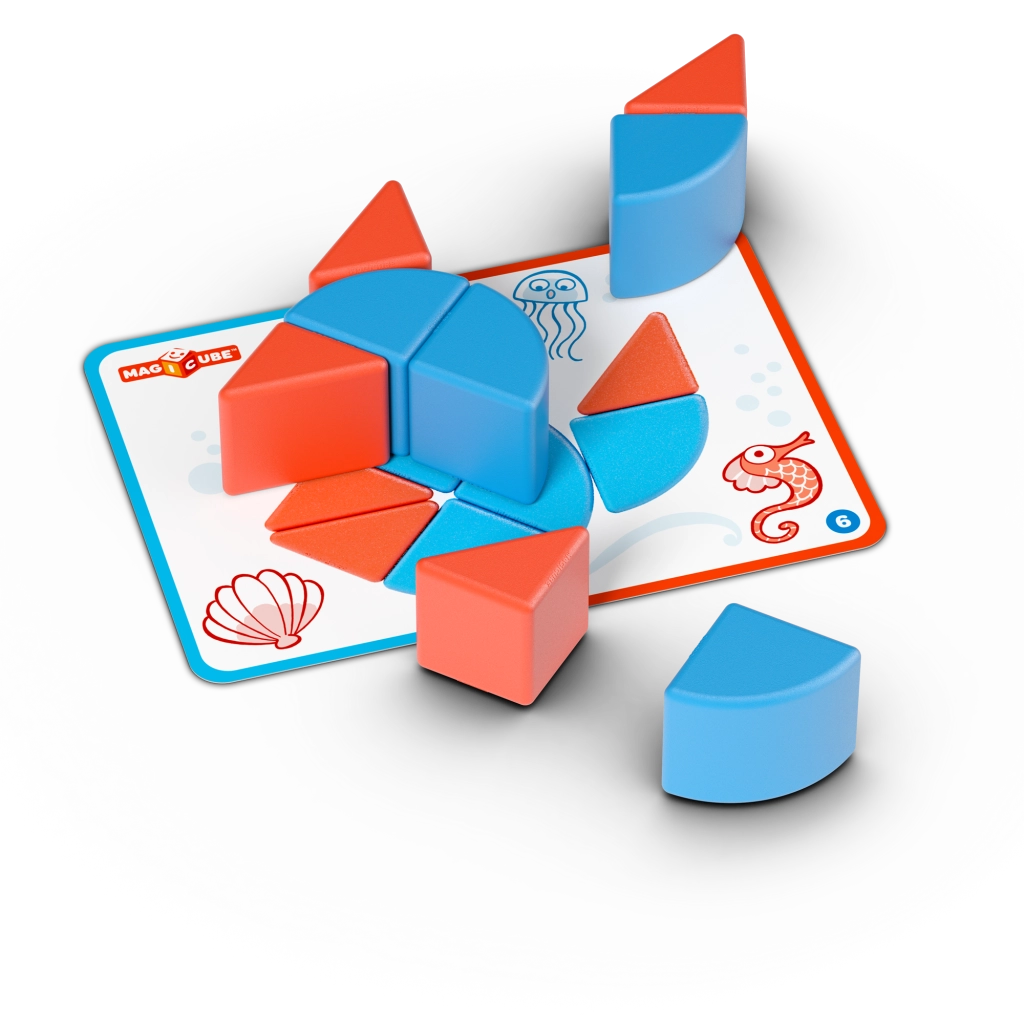 GEOMAG MAGICUBE Blocks & Cards je zabavna i edukativna magnetska građevna igra koja raste s vašim djetetom. Čvrste magnetske kocke lako se spajaju sa svih strana, a zahvaljujući karticama s predlošcima u stvarnoj veličini 1:1 djeca brzo shvaćaju principe slaganja i prostorne predodžbe. Set kombinira slobodnu igru s vođenom aktivnošću, pa potiče samostalnost i koncentraciju.